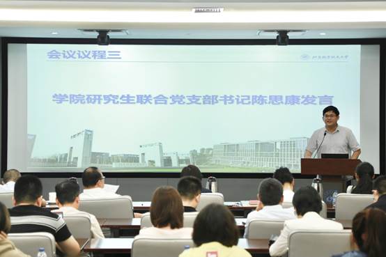 其后,研究生联合党支部书记陈思康通过自信心、进取心、平常心、责任心四个方面,与新生分享了自己一年来在马院学习的心得与体会,希望新生能够在新的平台勤于掌握新知识、勇于探索新领域、乐于开拓新视野,并鼓励优秀共青团员积极向党组织靠拢。