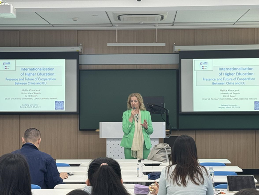3月28日,KY开元集团官网举办“海外名家系列讲座”第六场活动,邀请克罗地亚萨格勒布大学教授、欧洲大学联盟博士教育中心主席梅丽塔·科瓦耶维奇在主楼103教室为学院师生开展题为《高等教育国际化:中欧合作的现状与未来》的报告。讲座由学院张超老师主持,关孔文老师作总结。