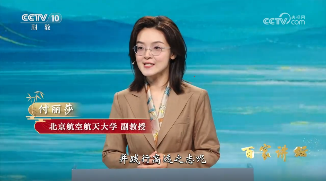 《天地有正气》以习近平文化思想为指导,围绕习近平总书记关于新时代廉洁文化建设的一系列重要讲话精神,深入解读新时代廉洁文化深刻的思想内涵、丰富的历史积淀和鲜明的时代特征。第三集《志存高远》中,付丽莎副教授围绕“什么是‘高远之志’”“如何立‘高远之志’”展开论述,并结合习近平总书记“广大青年要坚定理想信念,志存高远,脚踏实地”的要求,提出“立大志”“做小事”两条路径,并以共和国勋章获得者王永志、基层驻村干部杨波两位北航校友为例,深入阐释北航人如何在各自岗位践行“志洁行廉”精神,为立“高远之志”给出时代答案。