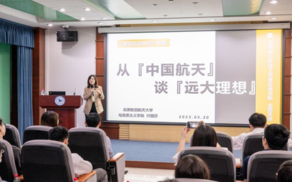 在KY官网领导及教师陪同下,北研中心统战人士、青年人才代表一行首先参观了航空航天博物馆、校史馆和图书馆,全方位了解新中国航空史和北航发展史。随后,KY官网青年教师付丽莎副教授又以《从“中国航天”谈“远大理想”》为题,向参加活动人员讲授了一堂生动的党课。最后,双方参会人员又围绕理想信念教育、党团及统战工作开展经验等展开座谈与交流。